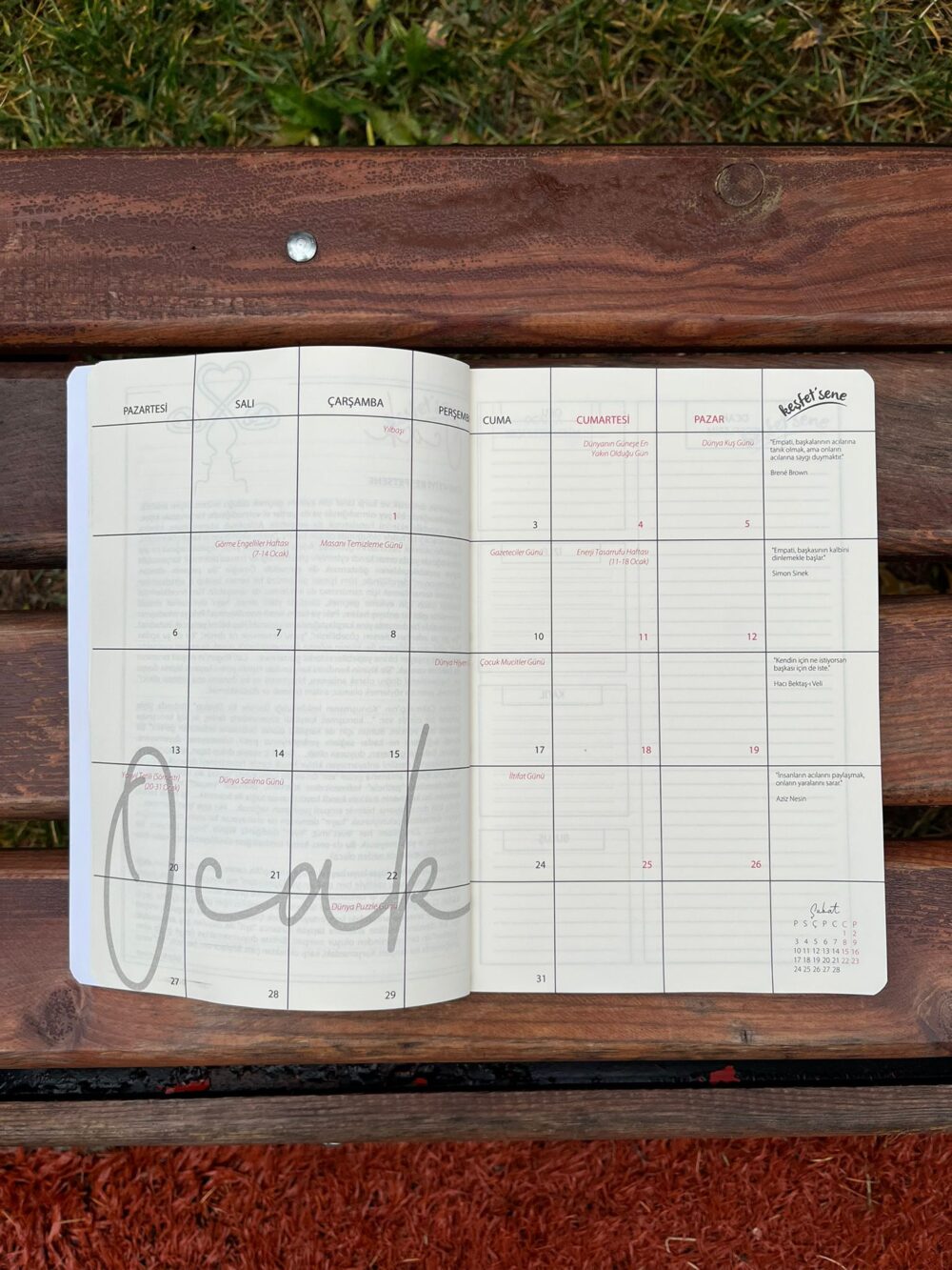 Çünkü biz günlük koşturmacalar arasında unuttuğunuz o küçük mutlulukları hatırlatmak ve hayatın keşfedilecek ne çok güzellik sunduğunu göstermek istiyoruz. Keşfet’sene ajandamız her ay size farklı bir ilham her gün yeni bir farkındalık sunacak şekilde tasarlandı.